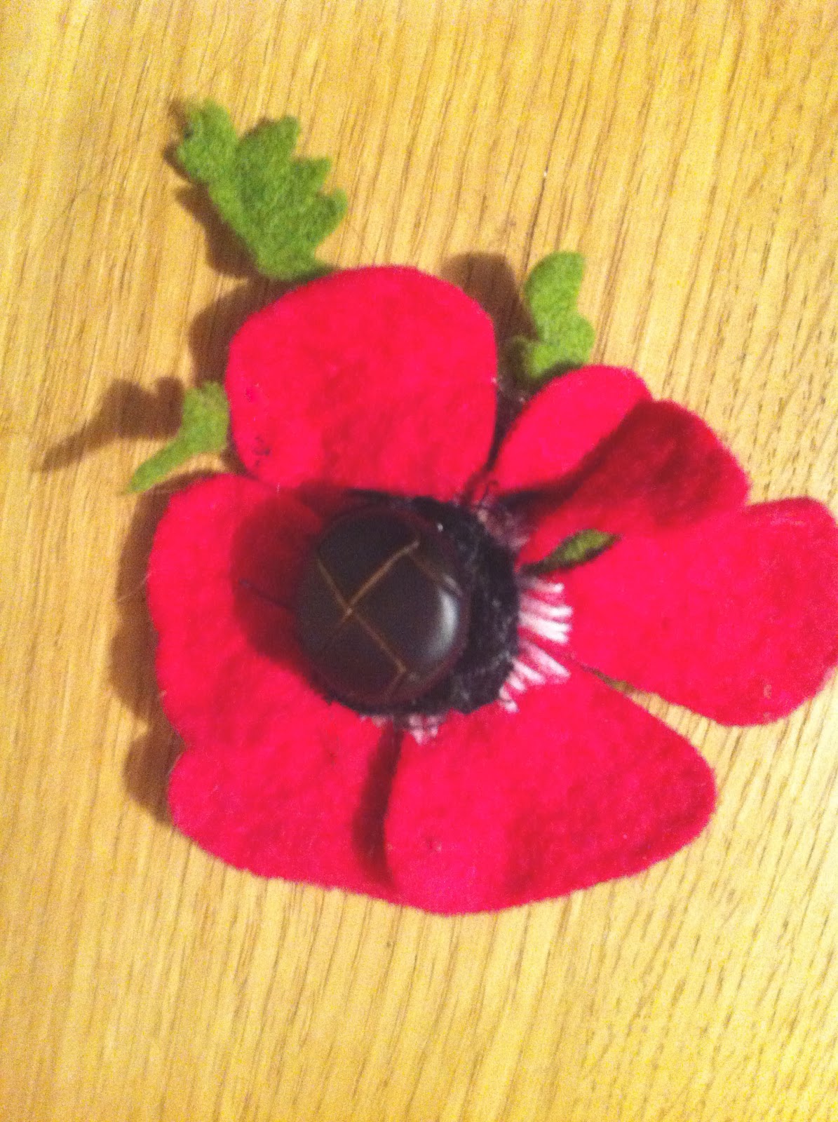 Cut petal shapes from red, pink, blue, white or purple felt. Stitch together in the middle, roughly, as your stitches will be covered by the button.